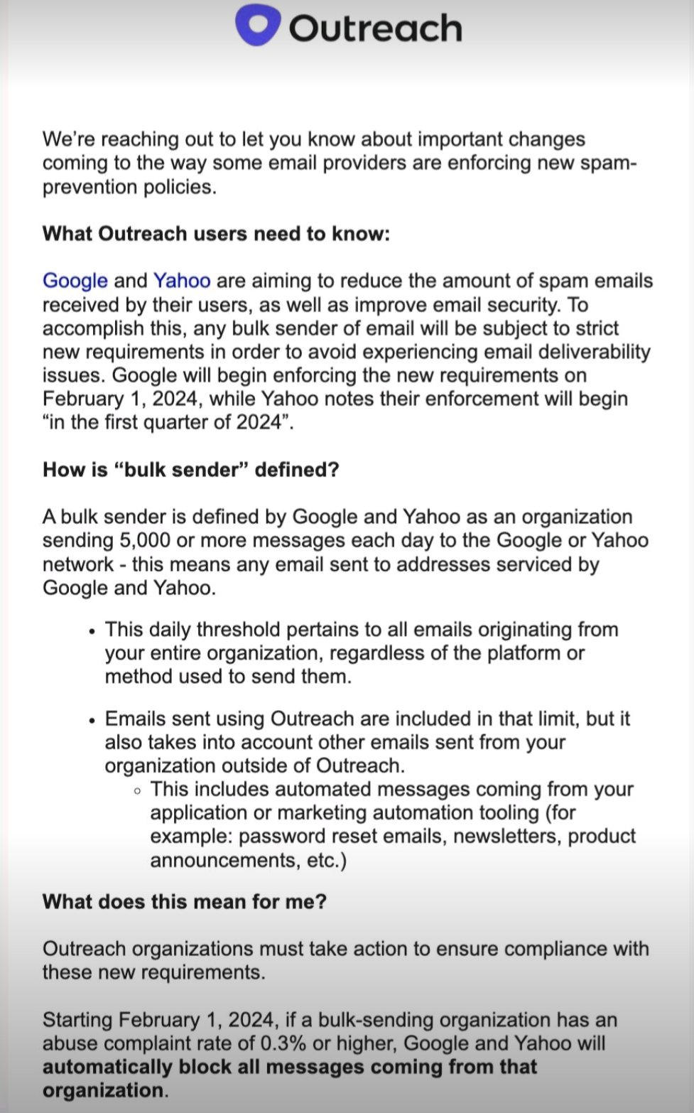 Outreach.io warns customers of bulk sending changes